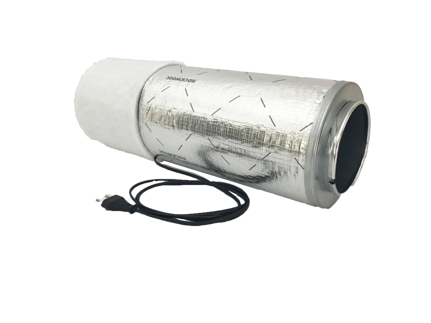 Der G-tools Mini Ventilator Filter ist ideal für kleine Growboxen und -zelte mit bis zu 250 Watt Belichtungssystemen. Er besteht aus einem Prima Klima K2600 Mini-Kohlefilter und einem integrierten Schalldämpfer für leisen Betrieb. Der Schalldämpfer reduziert den Lärm auf unter 40 dB, indem er den Luftstrom durch ein mit Steinwolle umhülltes Metallrohr leitet. Das Set wird vormontiert und verkabelt geliefert. Mit einer Gesamtlänge von 55 cm lässt es sich leicht installieren und bei Bedarf kann der Filter einfach vom Ventilator abgenommen werden.